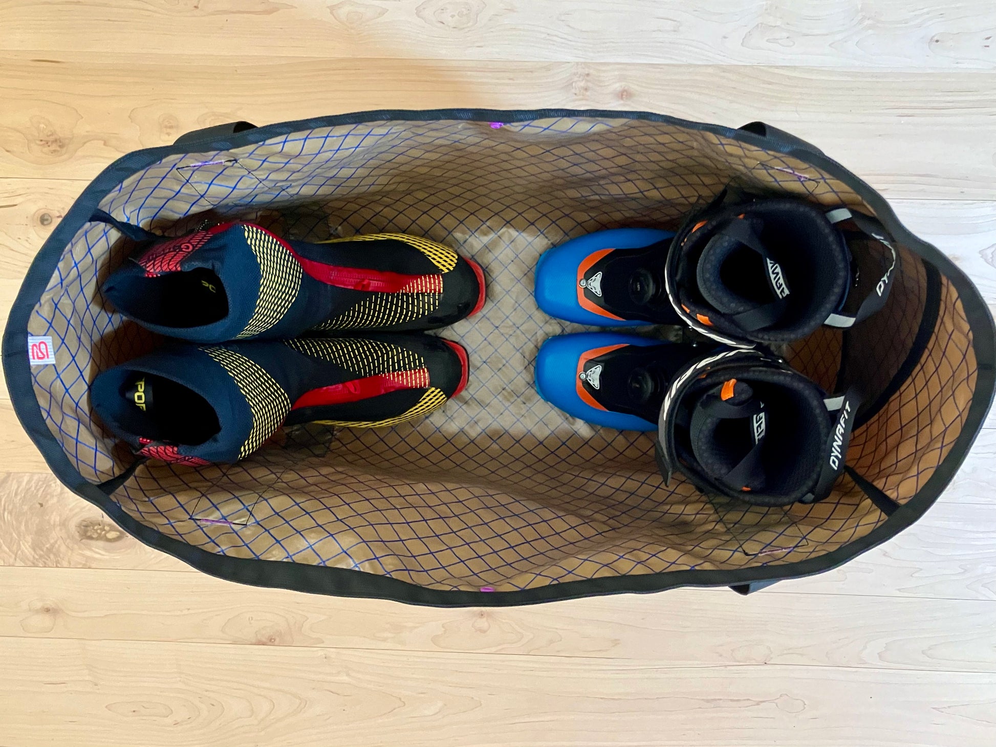 The BIAS XL tote bags are designed for lugging your kit around on gear intensive days. These easily accommodate a few pairs of boots + gear and are my personal goto for wintertime activities.